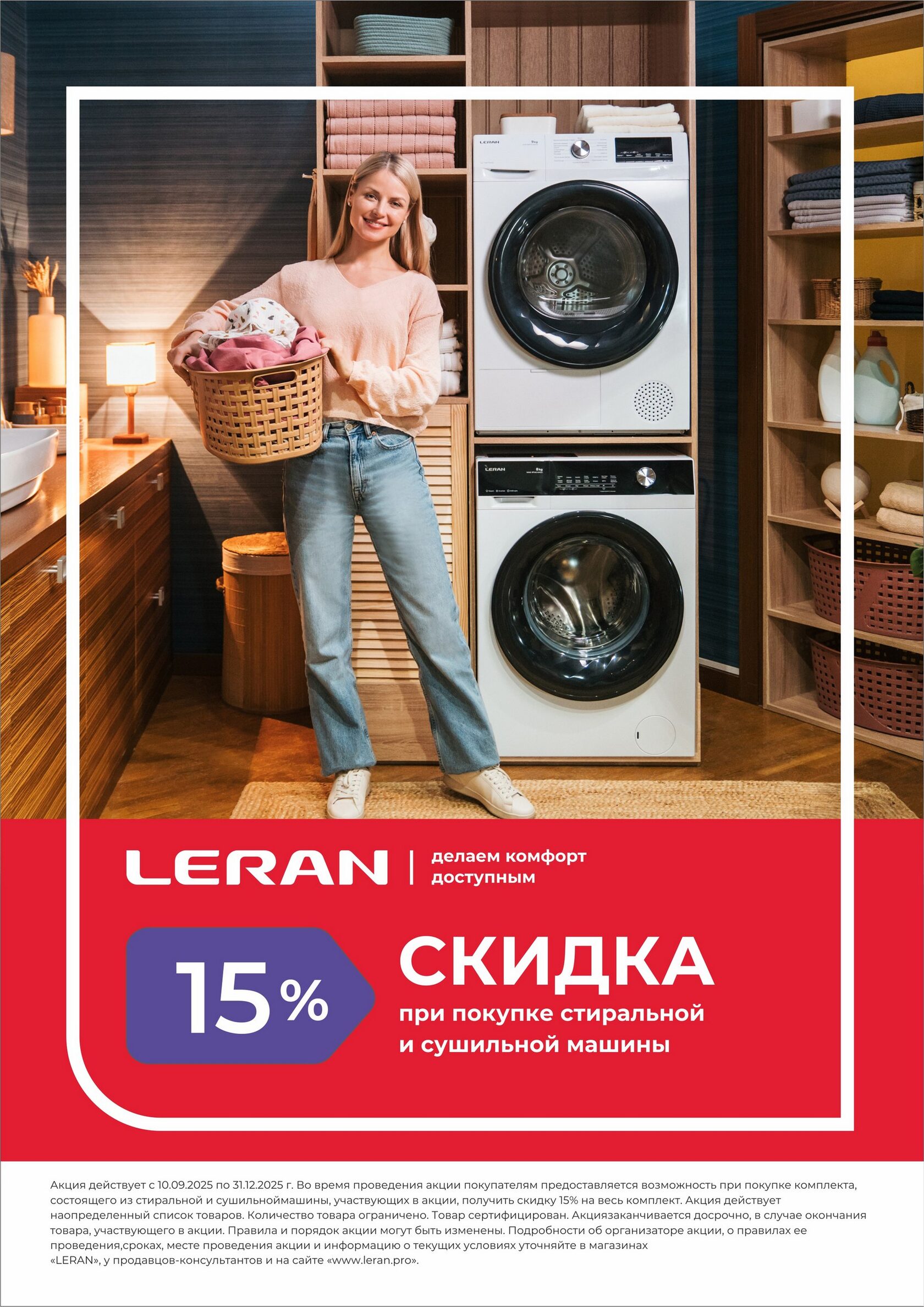 - - 15% на комплект: стиральная машинка + сушилка,